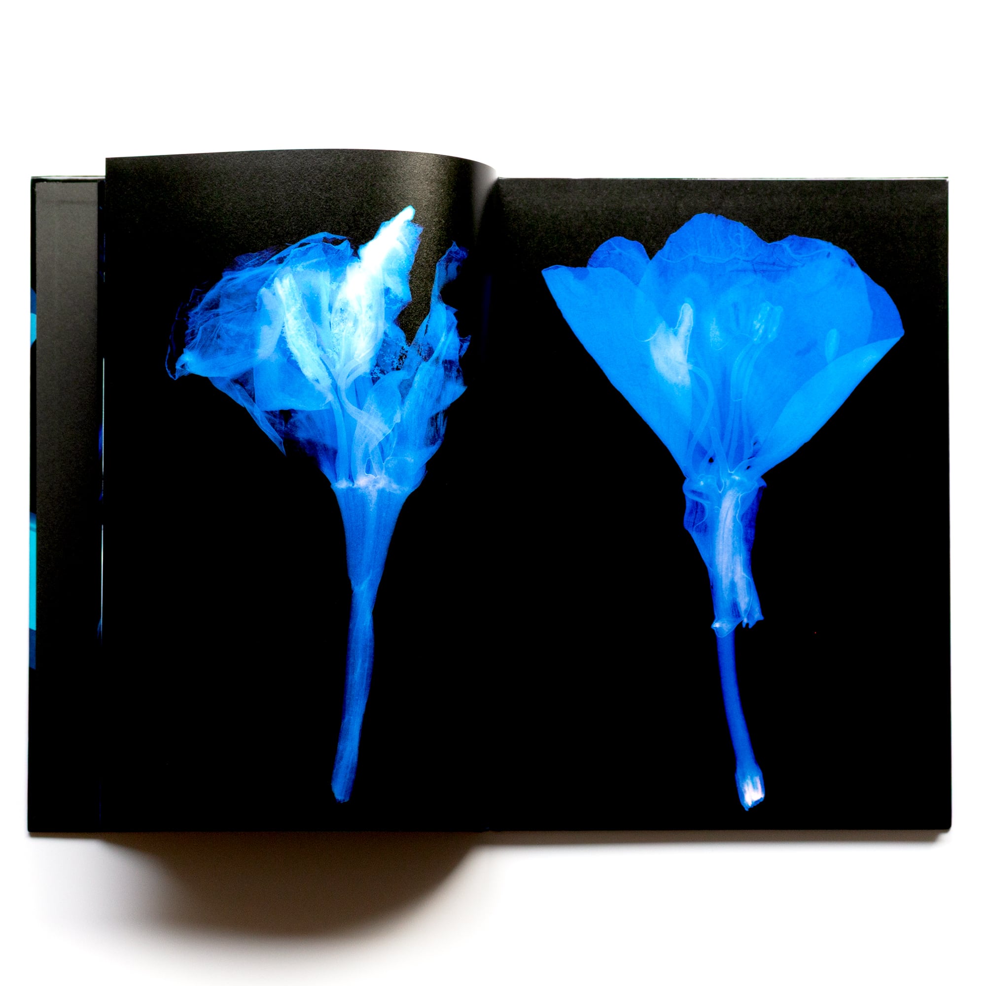 A world of pale, glowing shadows, where familiar flowers are revealed through scangram—a camera-less photographic technique.